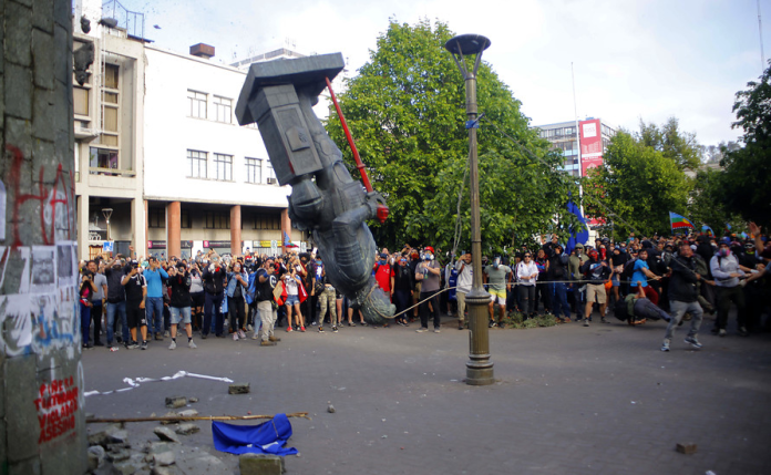 Chili: les manifestants détruisent la statue du conquistador Pedro de Valdivia lors d’une nouvelle journée de manifestation November 15, 2019