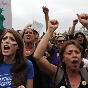 A proximité du Capitole, un groupe de manifestants, en majorité des femmes, qui ont brièvement occupé les escaliers du Capitole à Washington, ont une ultime fois, en vain, de faire pression sur les élus. Elles ont scandé notamment « honte » et « Novembre arrive », référence aux élections de mi-mandat.