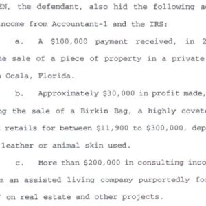 Les chefs d’accusation 1 à 5 concernent l’évasion fiscale pour des revenus d’une valeur de 4,3 millions de dollars; le 6ème chef d’accusation a trait à une fausse déclaration envers une institution financière; le septième mentionne une contribution illégale à une entreprise; et quant à la dernière charge, la contribution à une campagne électorale trouvée excessive.